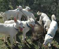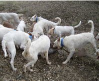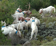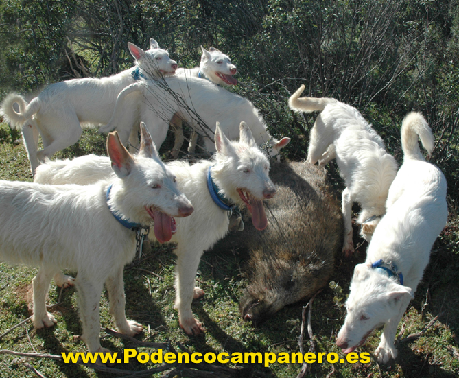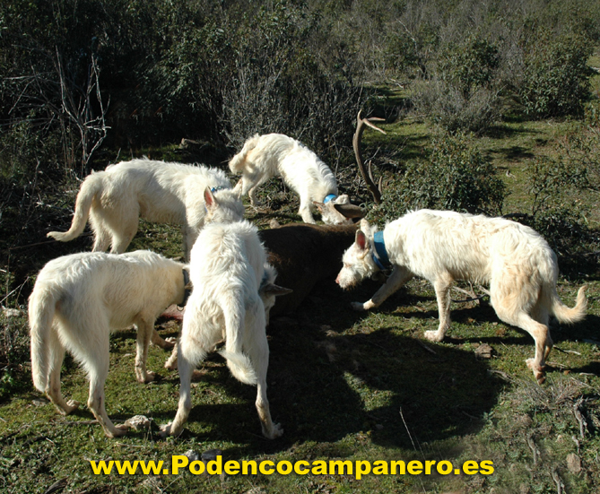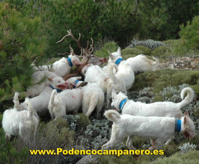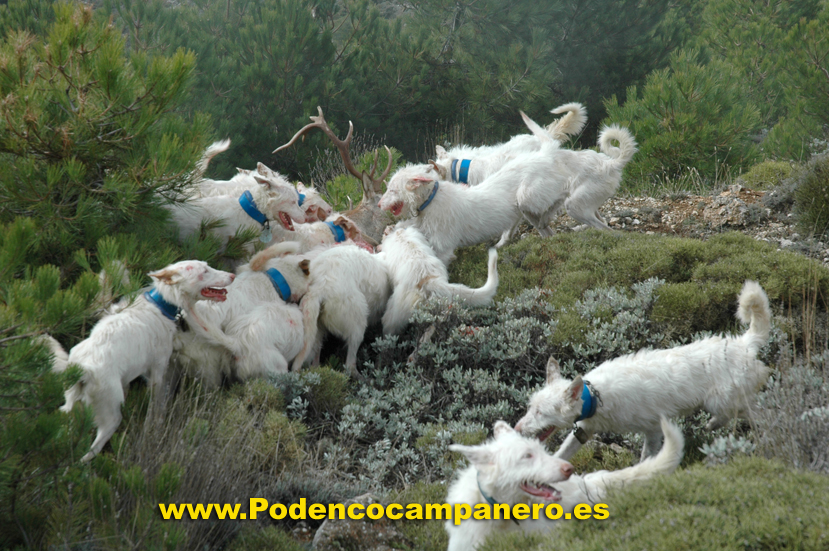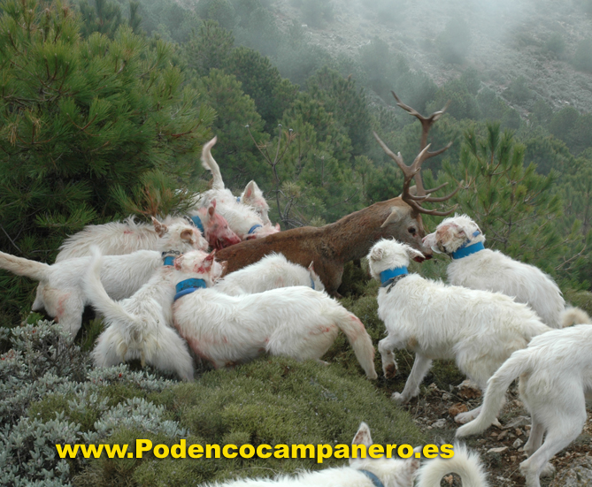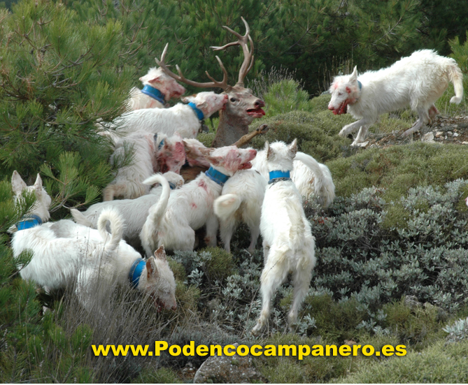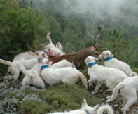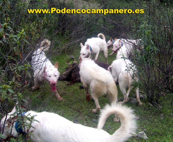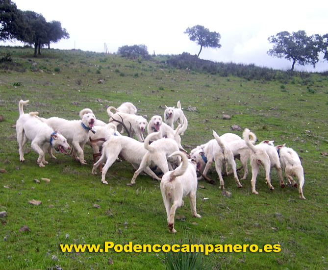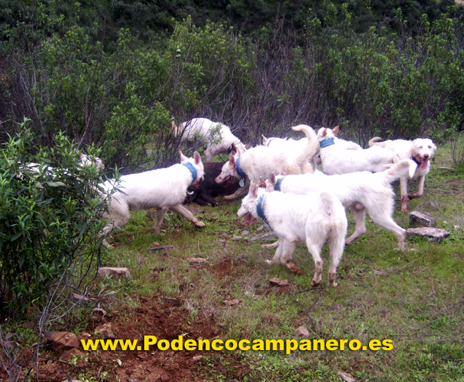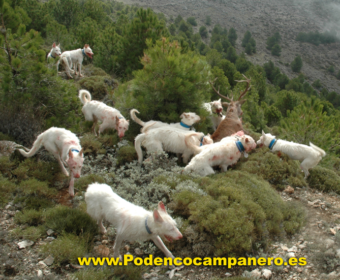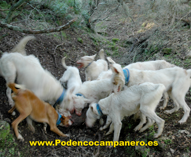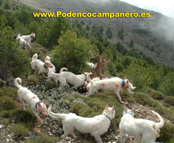 Cazamos solo con podencos campaneros porque nos desenpeñan todas la funciones que se necesita en la caza mayor, levantamiento acoso y agarre. |